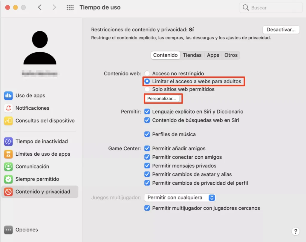 Instrucciones para bloquear sitios web específicos