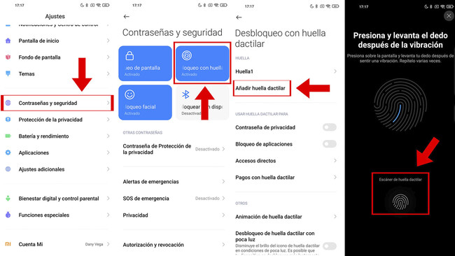 Pasos para configurar huella dactilar